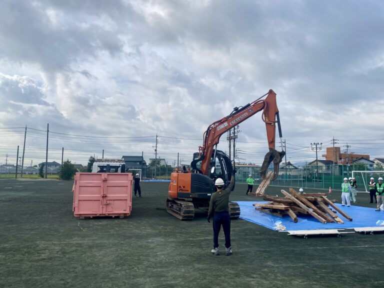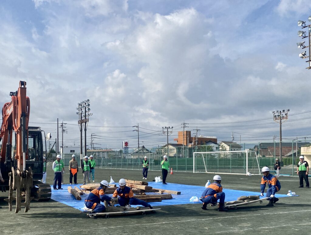 これは瓦礫撤去訓練。瓦礫の下に要救助者がいる設定で、瓦礫を重機でどかし、救助するところまで行われていました。