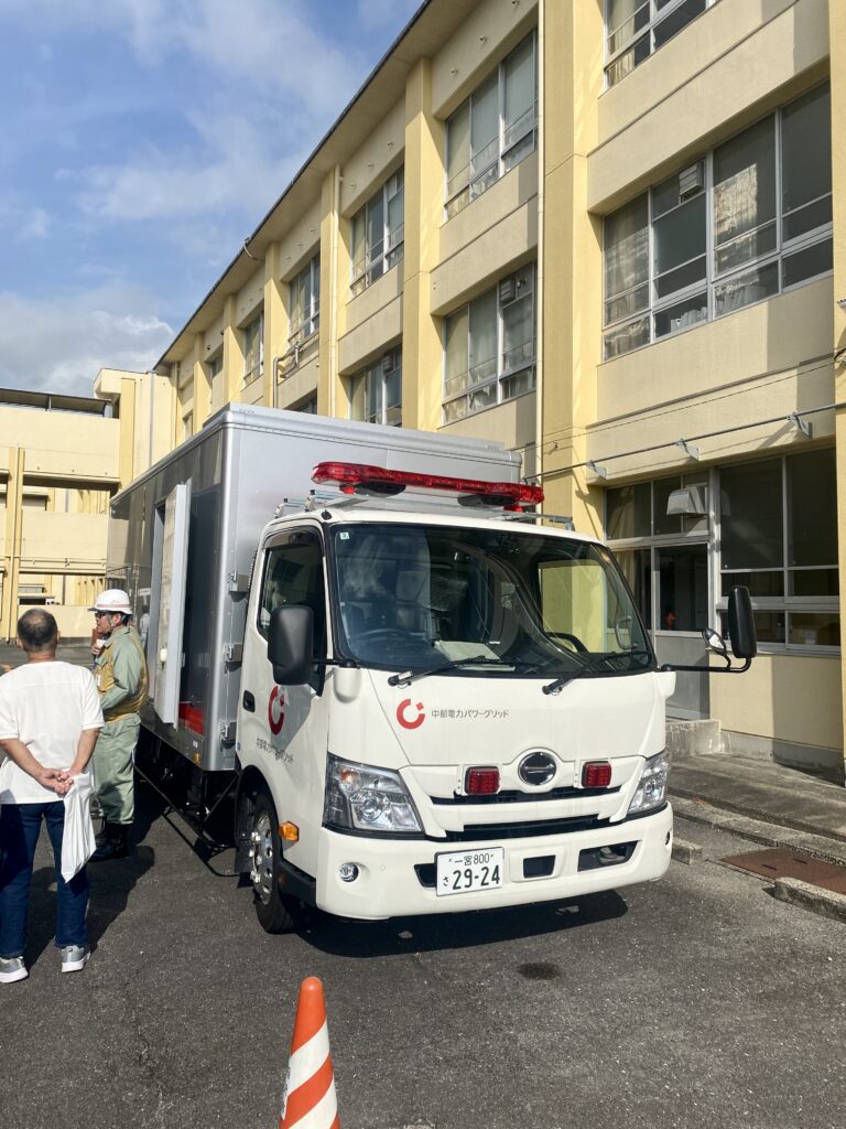 他にも、中部電力の協力で高圧電源車の説明(病院や避難所等に行き、電柱を介して電力を供給する)、DMAT(災害派遣医療チームのことで、稲沢厚生病院と稲沢市民病院が対応)の説明などを受けました。