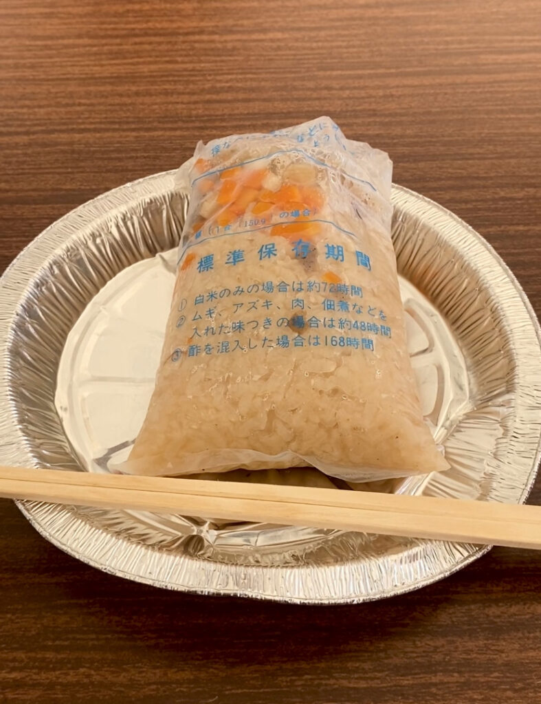 炊き出し訓練では、炊き込みご飯を頂きました。おいしかったです。一方で、調理して下さった方がポツリと言われた、「災害時にはこんなこと(手間)やっていられないよね」が残っています。