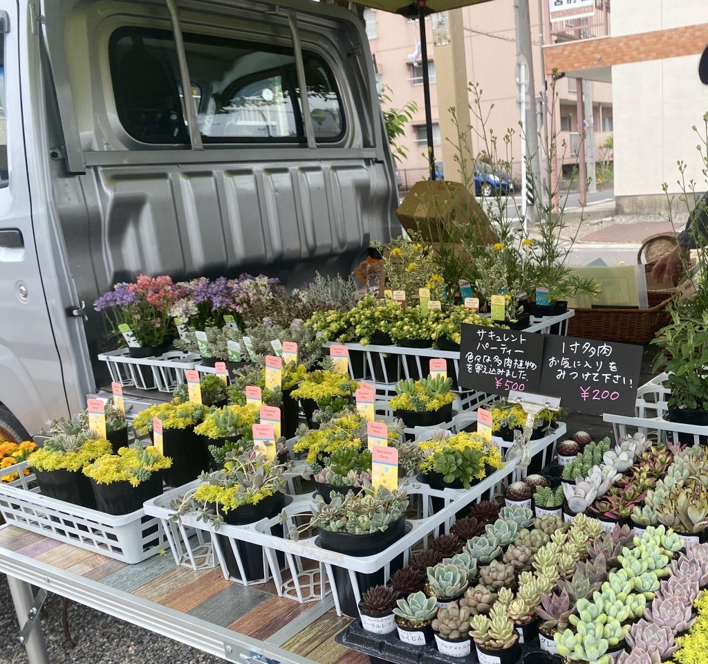 こうした事業者さんが、旧来の事業者さんと並んで、たくさん販売がなされることで稲沢市の植木・苗木産業が活性化されることを心から願っています。本当は駐車場があって、自然で、開放的な公園で、子連れの方向けのイベントも行いながら開催すればもっとたくさんの人に来て頂けると思いますし、そのポテンシャルを持っていると思うんですけどね。。