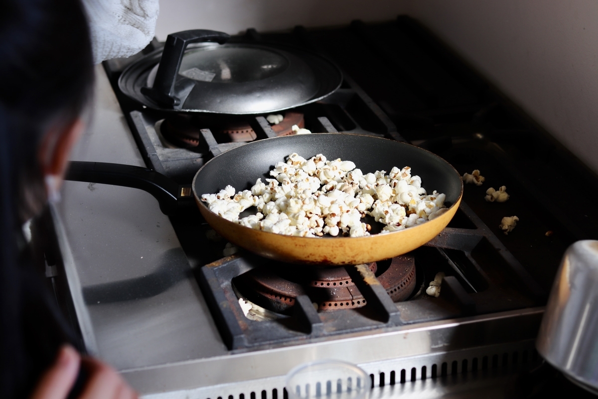 ボランティアに来てくれている人の提案で初めてポップコーン作りをしたのですが、豆が熱で弾ける様にみんなが喜び、塩キャラメルやバター醤油、バーベキューなどさまざまな味付けを楽しめて、大盛況でした(心配していた公民館のガスも問題なく使えました / 笑)